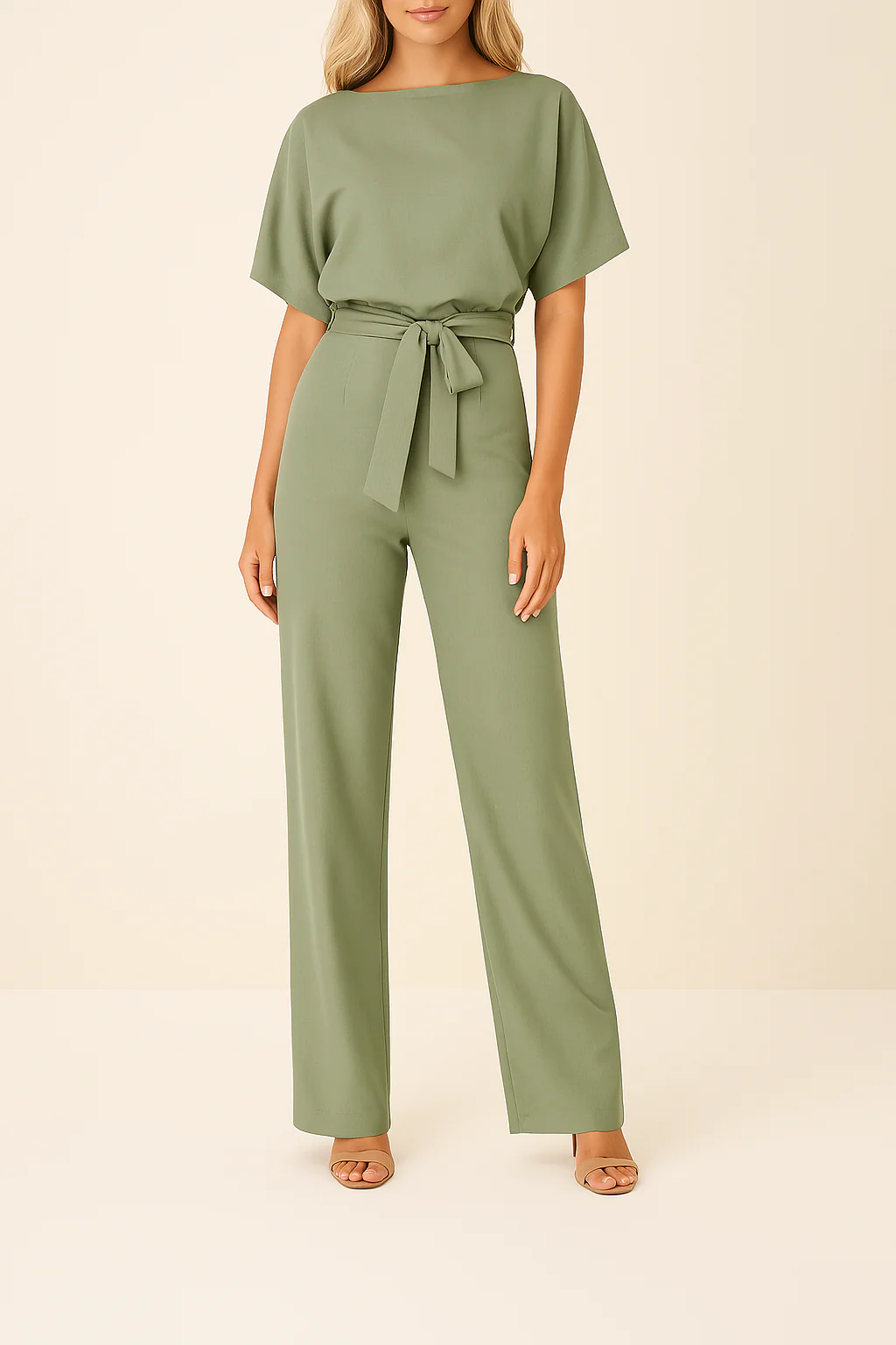 Dames Jumpsuit met Ceintuur – Elegante Rechte Pijpen